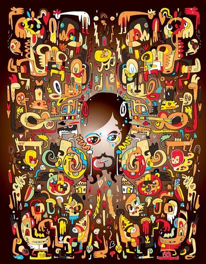 Arte por Jon Burgerman basado en la canción “A Sight To Behold” de Devendra Banhart.